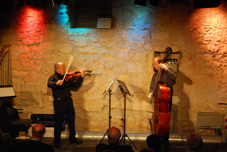 Vor ausverkauftem Jazzkeller präsentierten die vier Künstler zum ersten Mal ihr Programm aus Musik und Poesie.