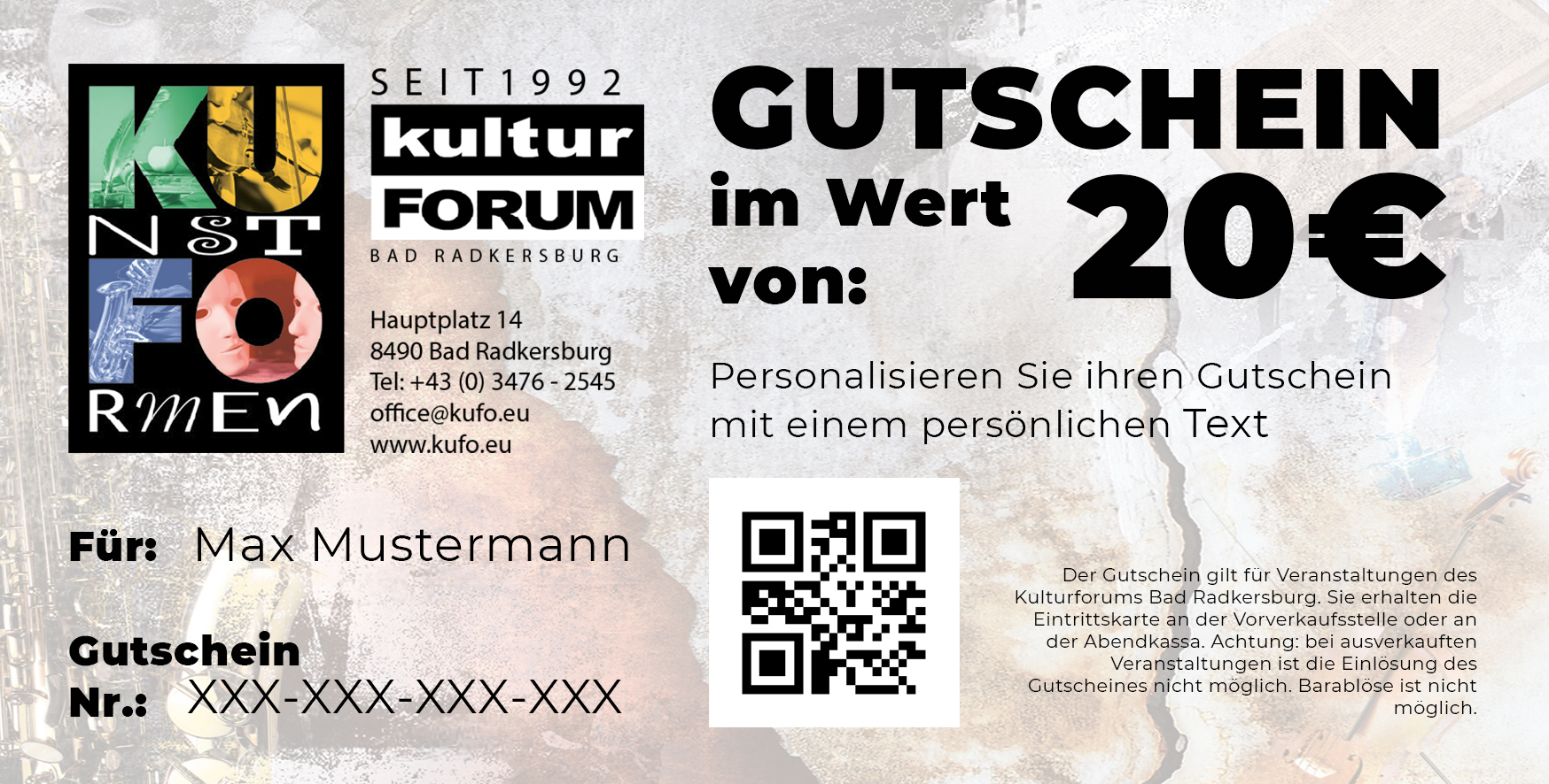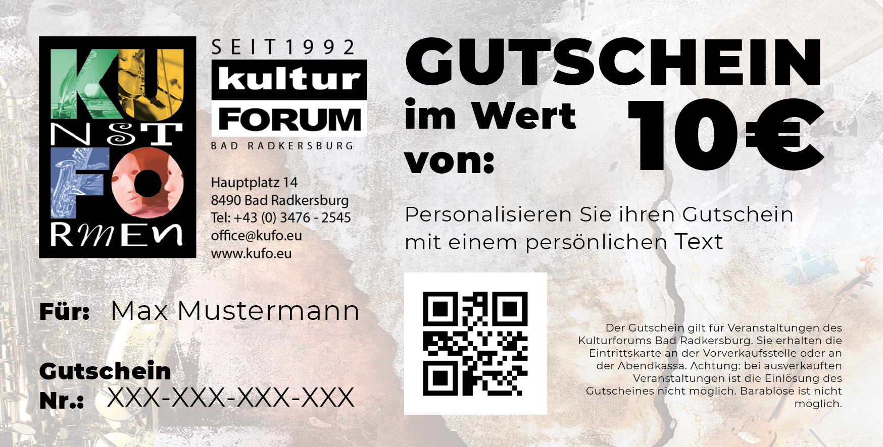 Ein Gutschein für die KUFO-Veranstaltungen gilt für Konzerte im Bereich Klassik, Jazz, Pop/Rock, Rhytm´Blues, sowie Theater, Kleinkunst und Musikworkshops.