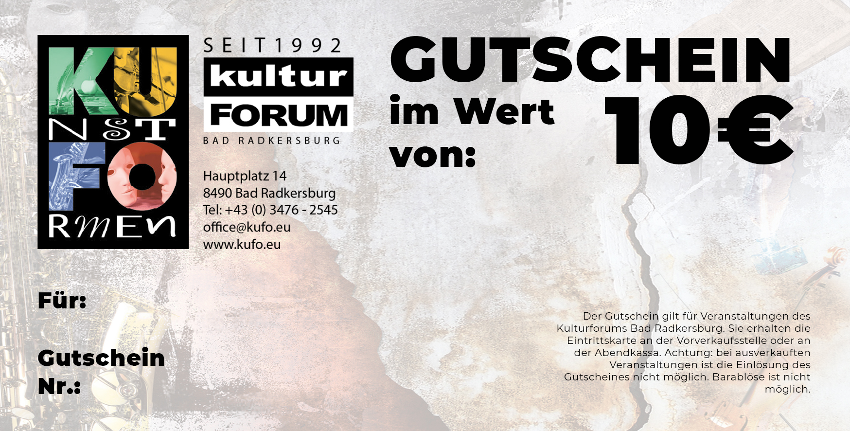Ein Gutschein für die KUFO-Veranstaltungen gilt für Konzerte im Bereich Klassik, Jazz, Pop/Rock, Rhytm´Blues, sowie Theater, Kleinkunst und Musikworkshops.